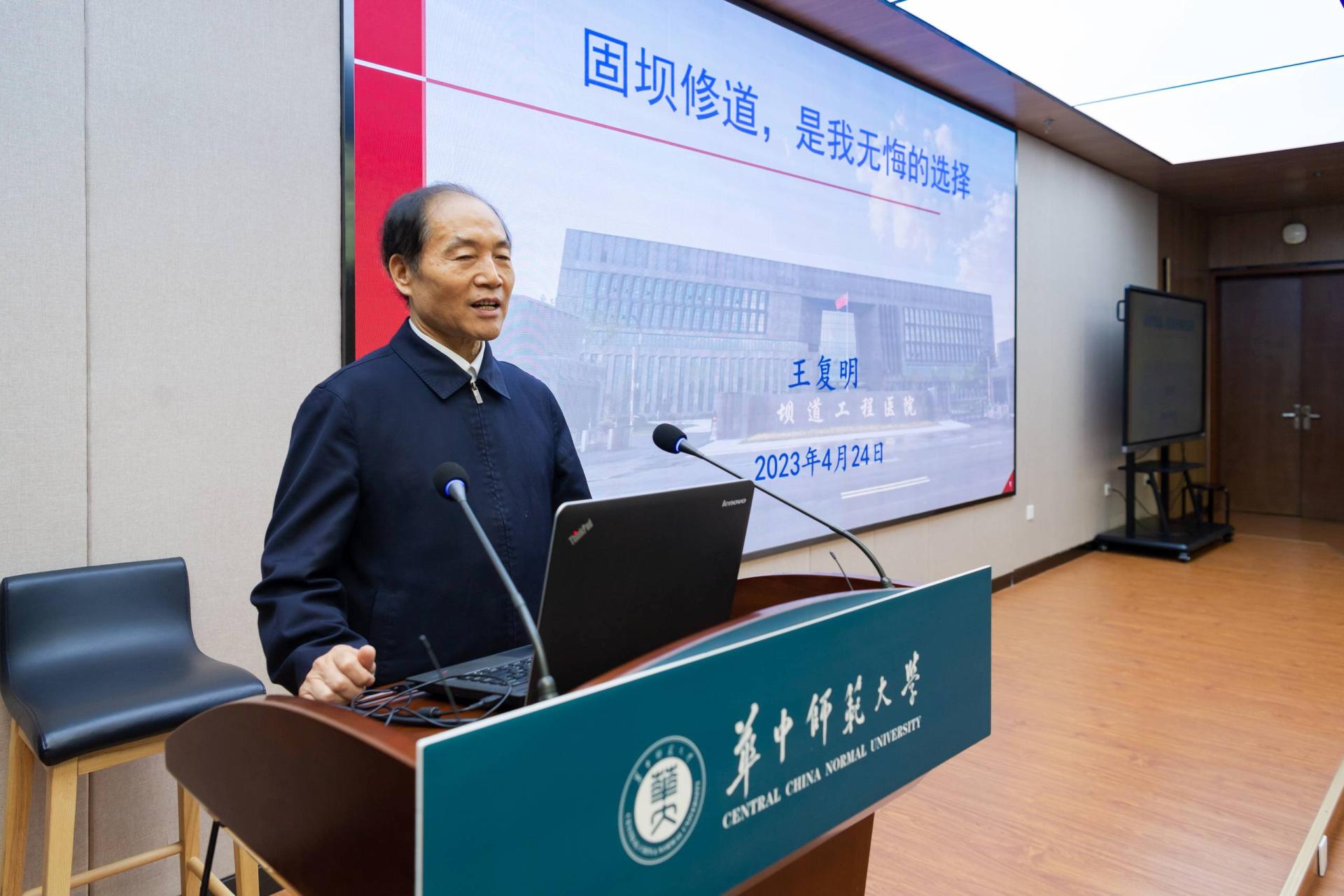 座谈会前,王复明院士作客环球在线官网第二期“院士大讲堂”,在南湖综合楼10127学术报告厅,为环球在线官网师生做《固坝修道,是我无悔的选择》专题讲座,通过一个个亲身经历的鲜活事迹,介绍了他在面对国家重大需求面前,如何挺身而出,倾其所有,无怨无悔的科学研究历程。王复明院士倡导和发起的坝道工程医院目前已经是世界上规模最大,场景最齐全的工程基础设施检测与修复综合服务平台,并已实现跨地区、跨行业、网络化的融合互通,引领行业领域学术及技术发展。