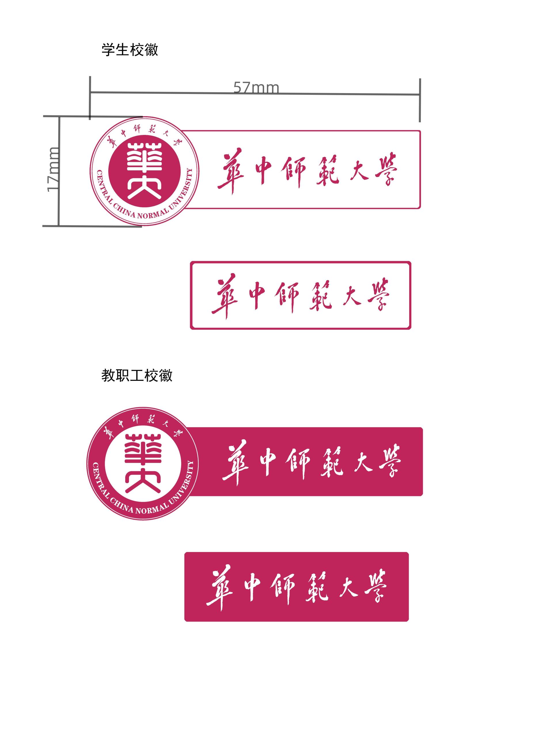 学校徽章为题有校名的长方形证章。教职工用徽章底色为深红色,字体为白色;学生用徽章底色为白色,字体为深红色。